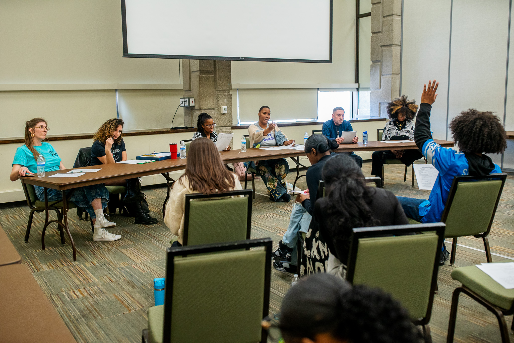 After you’ve fueled up and settled in, the first workshop of the day begins, hosted by teens from InsideOut Literary Arts Youth Advisory Board, followed by another open mic where you might share a poem or lyrics, or just sit back, relax, and cheer on your peers as they step to the mic! Before your next session, smash into the photobooth with your friends and wield fun props for an epic photo strip.