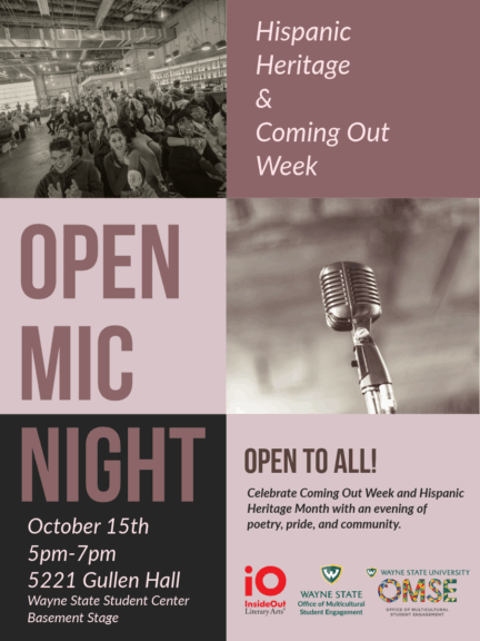 InsideOut is partnering with WSU Office of Multicultural Student Engagement (OMSE) for a community Open Mic celebrating both Hispanic Heritage Month and Coming Out Week.